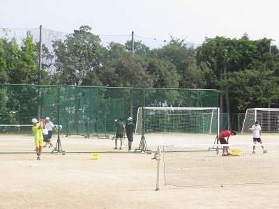 グランドでは,男子テニス部と陸上部が練習に励んでいました。