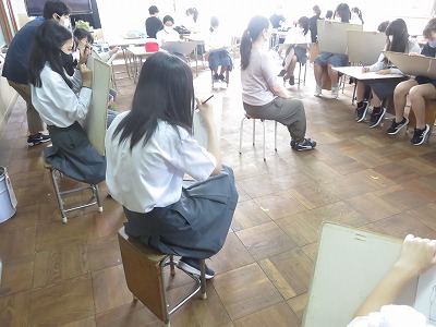 美術は,顧問の先生をモデルに,クロッキーに取り組んでいました。