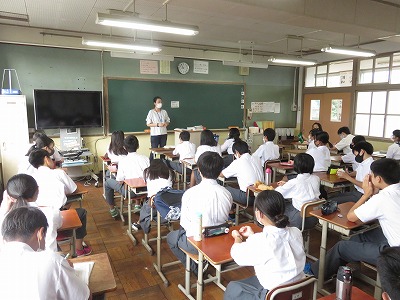 2年5〜7組の学活のようす。