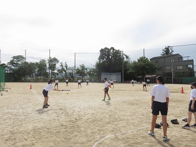 2年7組の保健体育は,グループに分かれソフトボールのゲームに行いました。