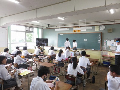 朝の学活で,昨日行われた委員会活動に関する報告がありました。写真は3年5組,8組,9組のようすです。