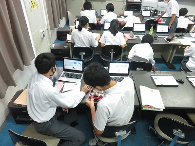 3年3組技術・家庭科(技術分野)は,プログラムの作成を行っています。本時は,箱の周りを動くセンサーカーのプログラム作成を行った後,実際にセンサーカー動かしてみました。動きが悪いところについては,プログラムの課題を探し,修正を試みました。