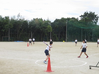 2年2組の保健体育は,ソフトボールに取り組んでいます。本時は,バッティングでは狙いを定め思いっきり打つこと,守備では捕球の姿勢を意識して,ゲームに取り組みました。