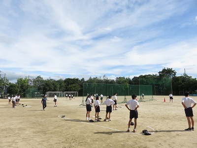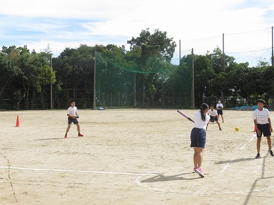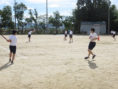2年生の保健体育は,グランドでソフトボールに取り組んでいます。