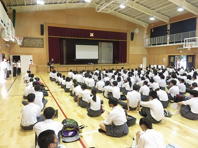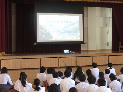 3年生は登校後,体育館に集合し,修学旅行の振り返りを行いました。