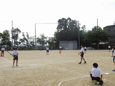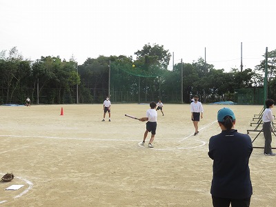 2年6組の保健体育は,ソフトボールのポジションの特徴を理解した上で,グループごとにポジションを決め,ゲームを行いました。