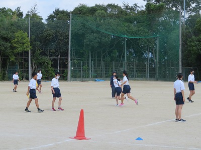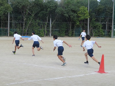 2年2組の保健体育は,リーレーのバトンパスについてグループごとに作戦を考えた後,実際に練習しました。