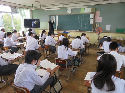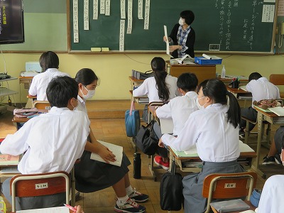 3年7組の国語は,松尾芭蕉の『奥の細道』を教材に,芭蕉の旅に対する思いを説明することを目標に,仲間と議論し,理解を深めました。