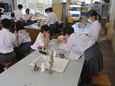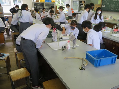 3年8組の理科は,電流が流れる物質は電気分解できることを,実験を通して明らかにしました。