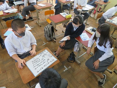 3年3組の数学は,教育委員会から主事が来られ,研究授業として行いました。
