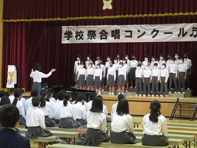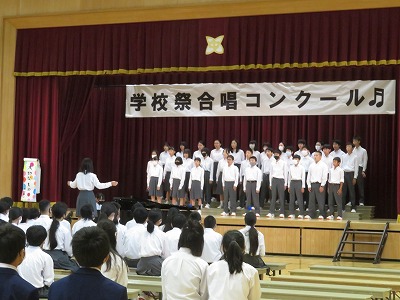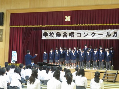 1年生合唱コンクール3組,5組,4組の発表のようすです。