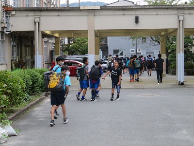 明日の朝,雨や走行中の自動車に十分注意して,登校してきてください。