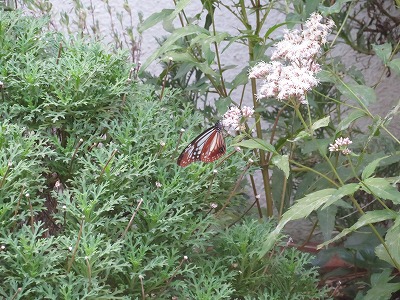 今朝も本校校門前にあるフジバカマにアサギマダラがやってきてくれました。