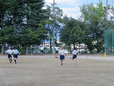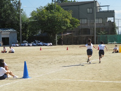 1年3組の保健体育は,学級対抗リレーの練習に励みました。