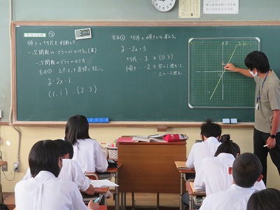 2年3組の数学は,傾きと切片を利用して一次関数のグラフがかけることを目標に,学びを深めました。
