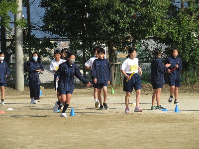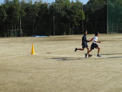 1年4組の保健体育は,バトンパス実技テストに向け,グループごとに確認と練習を行いました。