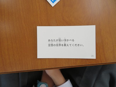 1組の生活は,カードに書かれた質問に対して,自分自身が思う答えとその理由について,仲間と意見の交流をしました。