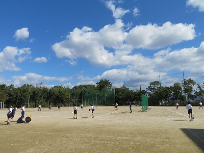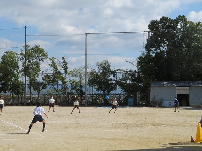 1年6組の保健体育は,ベースボール型の球技に挑戦します。まずはじめにビックベースボールを通してベースボール型球技のルールについて,学びました。この後,ソフトボールにも挑戦します。