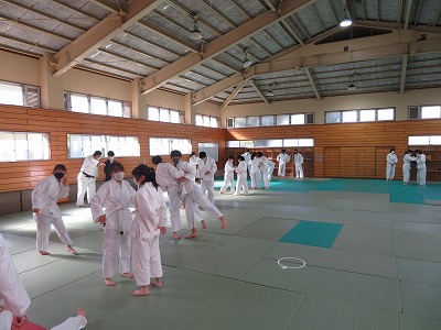 3年4・5組の保健体育は,柔道に挑戦しています。