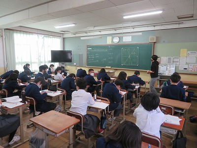 1年4組の数学は,グラフの上に2点をとり,比例のグラフをかくことができようになることを目標に,学びを深めました。