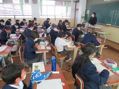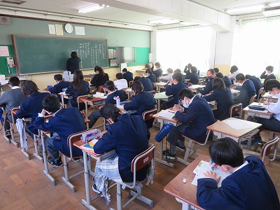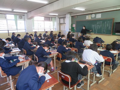 1年2組の国語は,『竹取物語』を教材とし,物語の冒頭を読み,古文の言いまわしについて,理解を深めました。