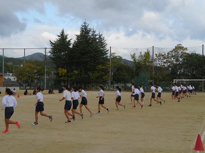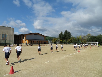 3年8,9組の保健体育は,シャトルランを行いました。