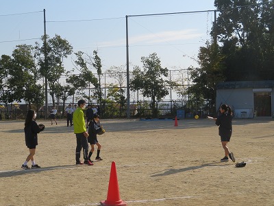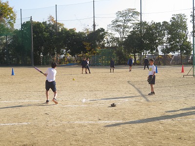 1年3組の保健体育は,グランドでソフトボールに挑戦しました。