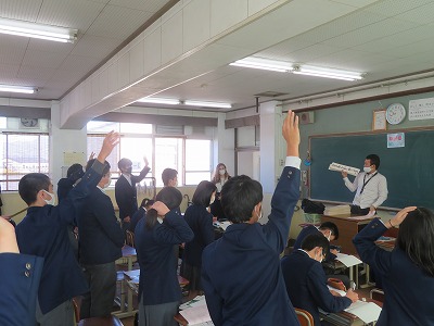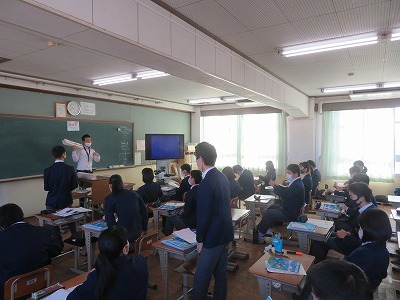 本日の3年2組の英語は,ALTの先生と教科担当とのチームティーチング授業を研究授業として実施しました。3時間目には授業を振り返る研究協議を行います。
