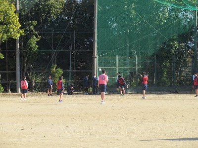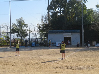 キャッチボールを行った後,三角ベースでゲームを行いました。