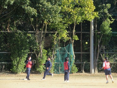 1年4組の保健体育は,ソフトボールに挑戦しました。