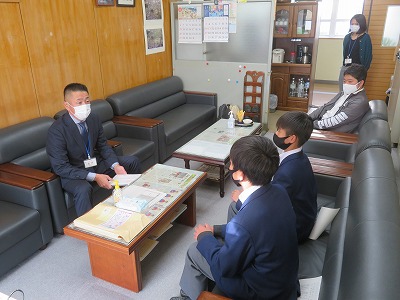 各学級から出た学級要望を生徒会本部で集約し,3つ要望について学校の協力を得るため,生徒会役員が校長先生と懇談しました。