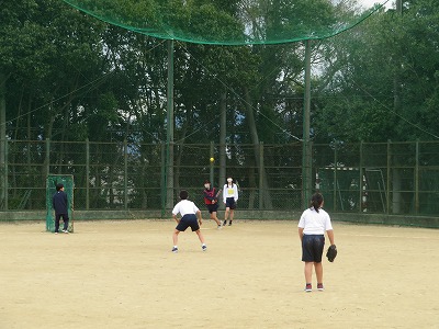 1年6組の保健体育は,ソフトボールに挑戦しました。前回の課題改善を意識して,ゲームに取り組みました。