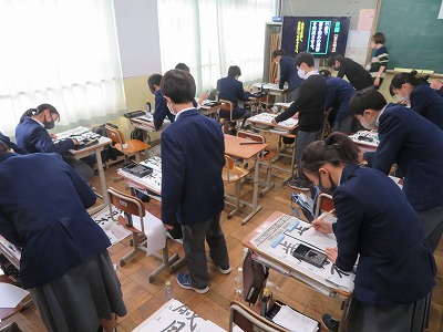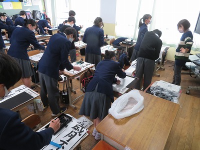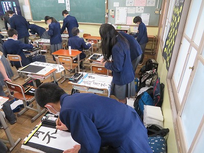 2年6組の国語は,書写に取り組みました。「歳月人を待たず」上手く書けましたか?