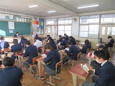3年7〜9組の朝読書の様子