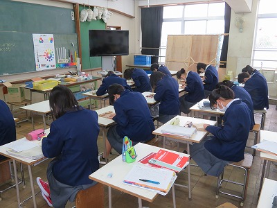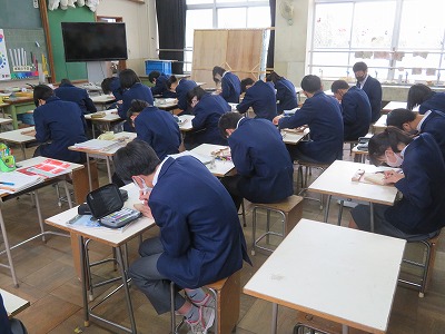 3年9組の美術は,完成の形をイメージし,木彫制作に取り組みました。