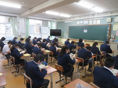 1組及び2年2,3組の朝読書の様子