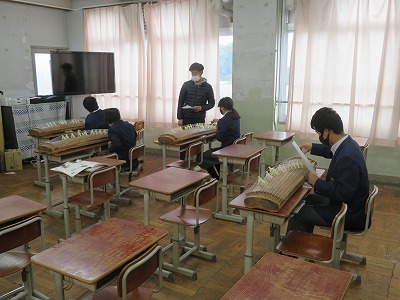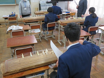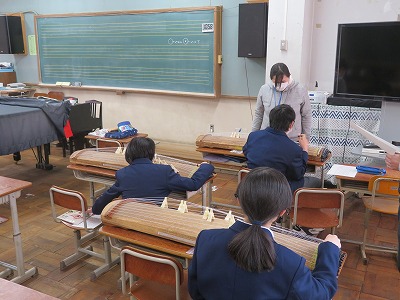 1組の音楽は,「さくらさくら」箏でひく練習をしました。