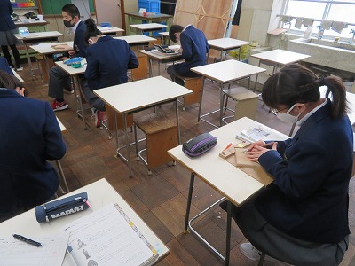 3年5組の美術は,彫刻に取り組んでいいます。本時は,完成度を意識し,作品を仕上げることを目標に,取り組みました。