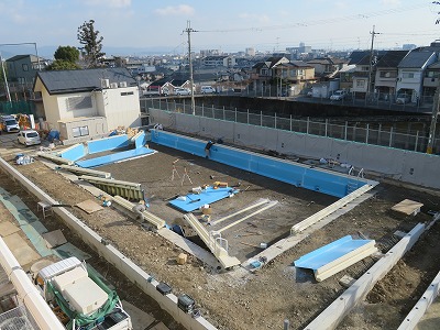 プール本体の搬入がありました。この後,据付け工事を行います。