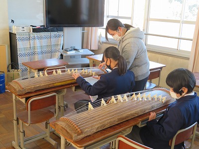 1組の音楽は,箏で「さくらさくら」を演奏する練習を行いました。