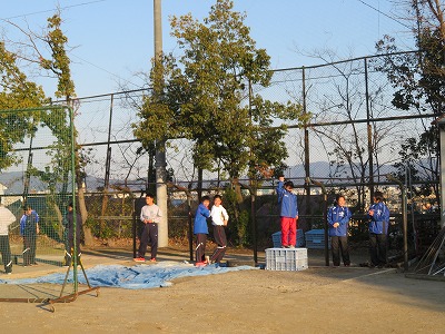 グランドでは,距離をとりながら,練習に取り組んでいました。