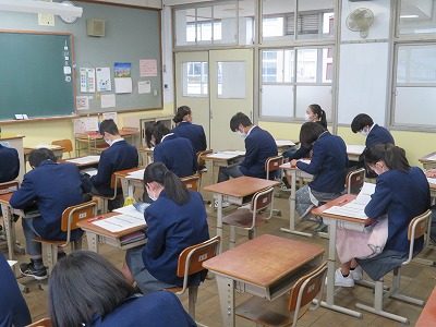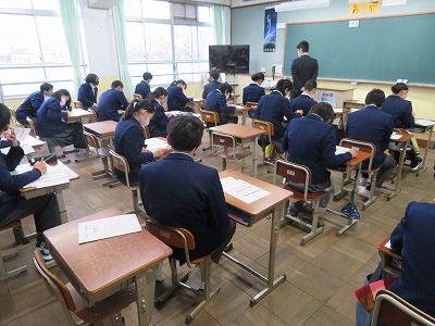 3年9組の社会は,3学期テストの返却を行い,テストを通して学びの振り返りをしました。