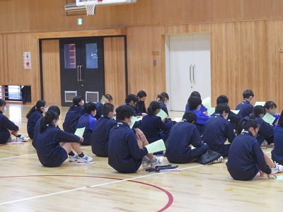 3年2,3組の保健体育は,中学校卒業での期間で取り組む球技に関するオリエンテーションを行いました。