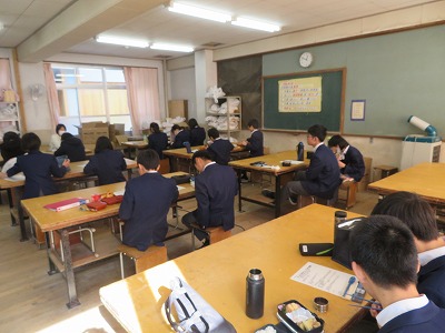 昼休み生徒会本部役員は,技術室でランチタイムミーティングを行い,3年生を送る会など,これからの取組の進め方について確認しました。