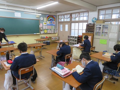1組及び2年2,3組の朝読書の様子