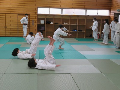 本時は,格技室で,安全に配慮し,後方受け身の練習をしました。