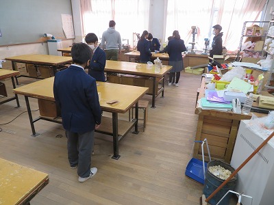 1組の技術・家庭科(技術分野)は,組み立てた作品の塗装を行いました。