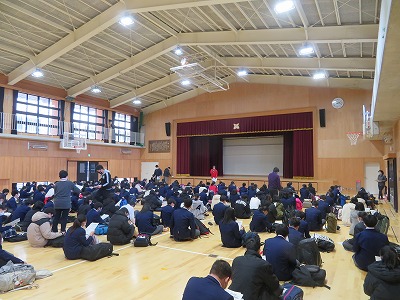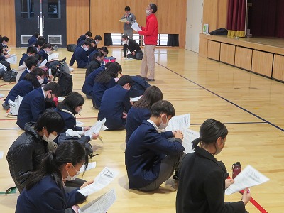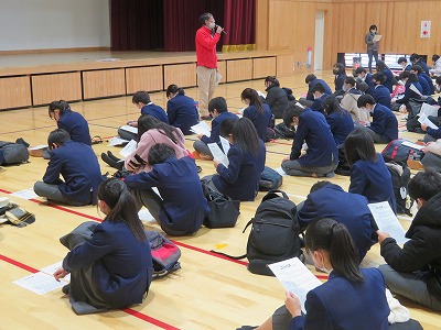 6限,3年生は私立高校入試事前指導を体育館で行いました。