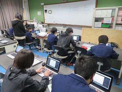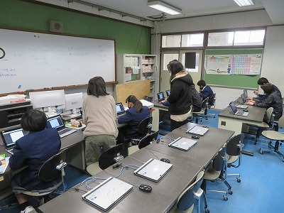 1組の英語はコンピュータ室で,単語の入力に挑戦しました。