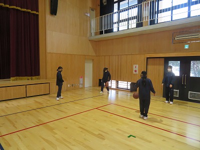 1年2組の保健体育は,バスケットボールに挑戦しました。本時は,その場で行うドリブルと移動しながら行うドリブルの練習を行いました。